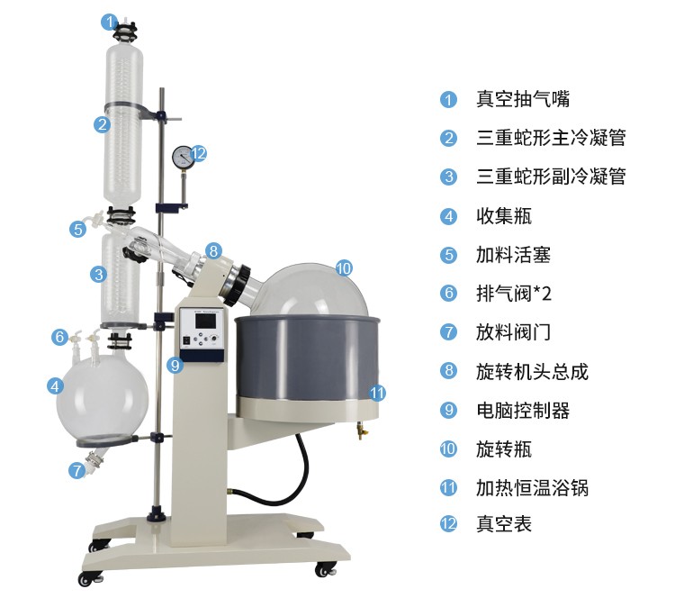 活塞式加料閥套接聚四氟乙烯加長管,可在真空狀態(tài)下連續(xù)進料至蒸發(fā)瓶。