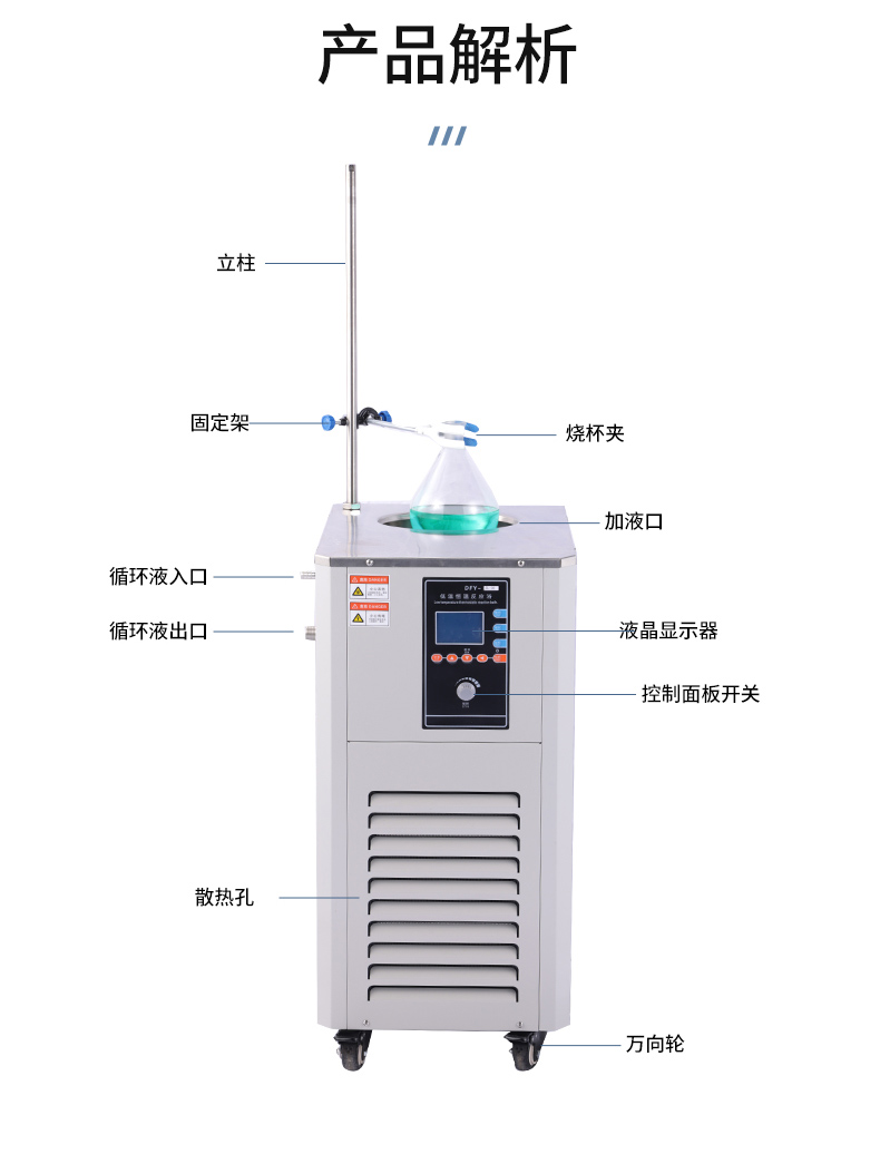 低溫恒溫反應浴(槽)是我公司改進制造的一種新型實驗儀器。適用于科研、生物、物理、醫藥、化工等部門進行低溫實驗,可代替干冰和液氮做低溫反應和相關設備提供低溫條件,又可以作為低溫恒溫水槽做運用粘度的測定,具有底部磁力攪拌,分兩段攪拌,使不銹鋼槽內溫度更均勻,智能控溫精確等特點。
