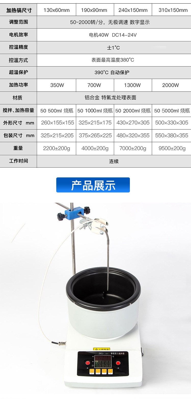 采用鋁制特富龍鍋加熱,可水浴、油浴。
